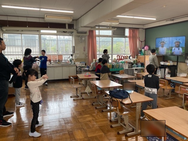 毎朝、朝の会にラジオ体操をしています。体をしっかり動かして、今日の学習に備えます。音楽に合わせて楽しそうにリズムをとる子どもたちもいました。