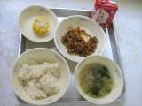 今日の献立は, 麦ごはん,牛乳,豚肉と野菜の煮つけ,かきたま汁 です。 かき...