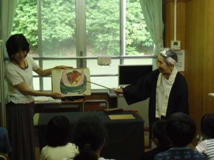 放課後まなび教室スタッフの方のお母さんが遠方から来てくださり,子ども達のために大型絵本の読み聞かせや紙芝居をしてくださいました。また,昔話を楽しいリズムに合わせて披露してくださいました。子ども達はいつもとは違った取組の中で,新たな楽しみ方を学びました。
