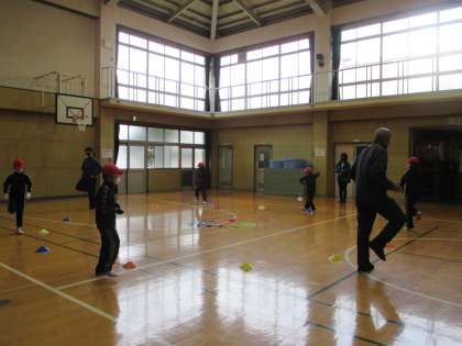 3曲目はマイムマイム,イスラエルの曲です。子どもたちの一番のお気に入りのようです。リズムに乗ってみんなで楽しく踊りました。