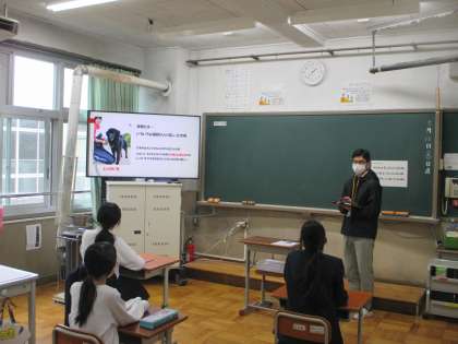 この日は「上村さんの挑戦ー被災犬と共にー」を教材に,「難しいことだからこそ頑張ることにやりがいを感じられることに気づき,何事にも挑戦しようとする心情を育てる」を目標に学習していました。