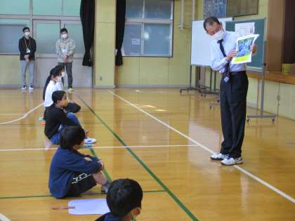 また,4年生はメモを取る学習のため,一生懸命講話のメモを取りながら聴き取っていました。