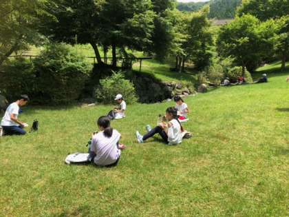 ソーシャルディスタンスを保ちつつ,お家の方に作って頂いたお弁当を美味しく食べています。