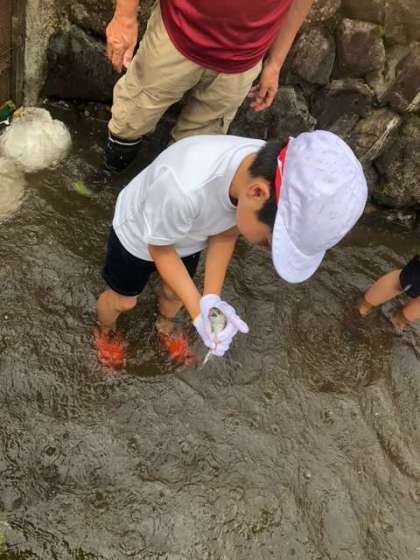 イワナをつかめた子は帽子の色が白から赤に変わっていきます。