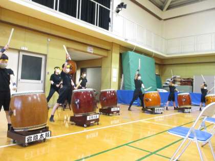 「宕陰太鼓」は,今年で結成23年目となりました。伝統を受け継ぎながら今年度初めてのお披露目となりました。つぼみ・太鼓囃子・みこし太鼓・宕陰太鼓の4曲を聴いていただきました。