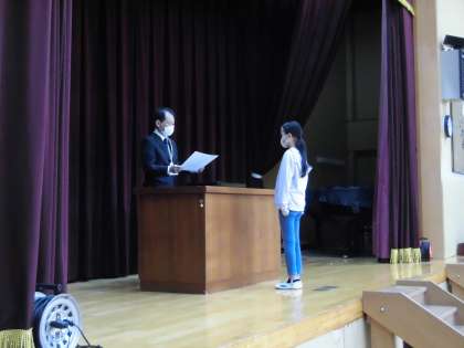 修了式では,6年生前期課程修了証書授与,学校長講話の後,多くの表彰もありました。