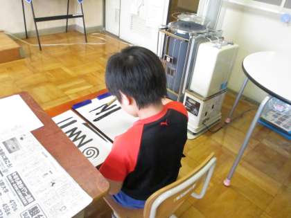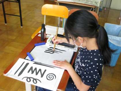 新しい習字セットを使用できることを子どもたちは楽しみにしていました。今日は「用具のあつかい方をおぼえて,毛筆でいろいろな線を書いてみよう」を目標にゆっくり筆を動かしながら,色々な線をかいていました。
