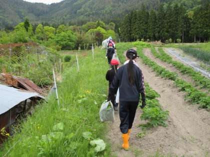 宕陰の特産物であるフキを地域で採らせて頂きます。それを義援金として困っている人へ送ろうという取組です。