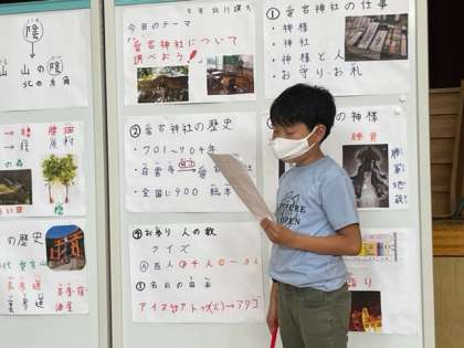 今週金曜日,前期課程の児童は嵯峨小学校にて交流をします。その中で,3,5年生は「宕陰キラキラTalking time」を行います。総合学習で取り組んだ学習をポスターセションで発表します。今日はそれのリハーサルです。