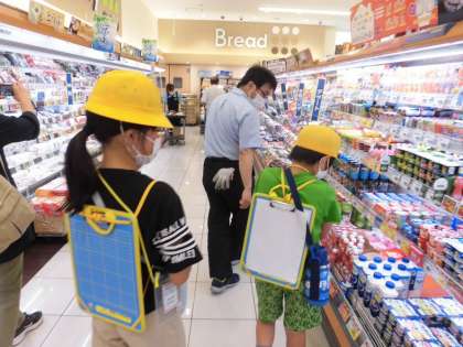 3年生がスーパーマーケットの見学へ行きました。店長さんが店内を案内をしてくださった後は、子どもたちの質問に丁寧に答えてくださいました。
