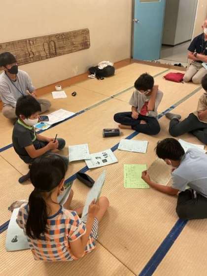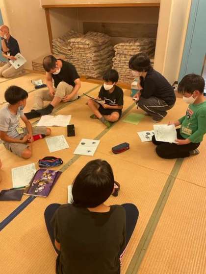 反省会の様子です。楽しかった1日を振り返ります。この後就寝準備。22時消灯です。