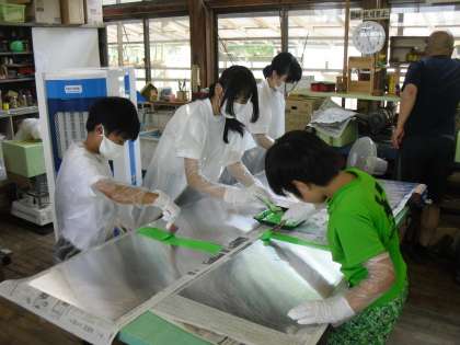 その後、宕陰小中学校の看板作りに取り組みました。
