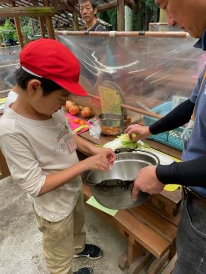 今日も飯盒炊爨です。今日のメニューは「牛すき焼き風煮」です。