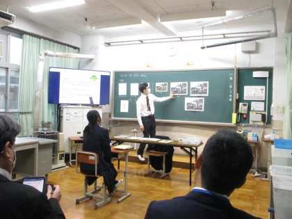 研究主題「自ら学び、活躍し続ける子どもを目指して〜コミュニケーションに必要な資質・能力の育成を通して〜」として、各教科ではコミュニケーション能力の育成に焦点を当てた授業づくりを目指して取り組んでいます。