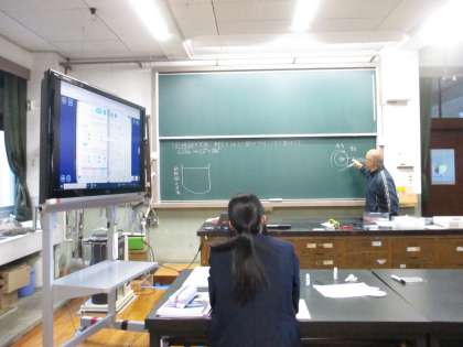 今日の1時間目、9年生は理科「化学変化とイオン」の学習でした。硫酸銅水溶液に入れた銅板の様子を観察していました。そして、銅が析出された様子を見て、イオンや電子モデルを用いて説明しようと一生懸命考えていました。