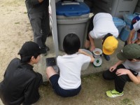 宮島へフェリーで移動中です。みんな初めての船でテンションが上がります。