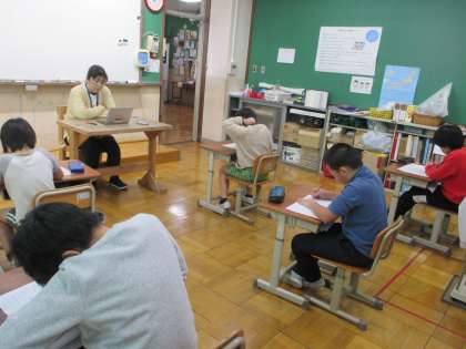 今日は、前期課程の漢字大会です。とめ・はね・はらいに気をつけて正しく漢字を書き、定着が図れるように毎学期実施しています。