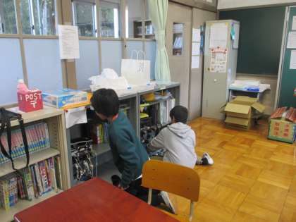 終業式の後は、大掃除を行いました。教室の床やロッカーなど隅々まできれいにしていました。