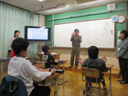 2月21日、前期課程の子どもたちが手話学習を行いました。講師として萩原さんと通訳の中口さんにお越しいただきました。