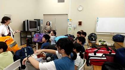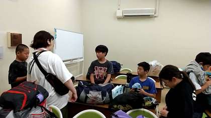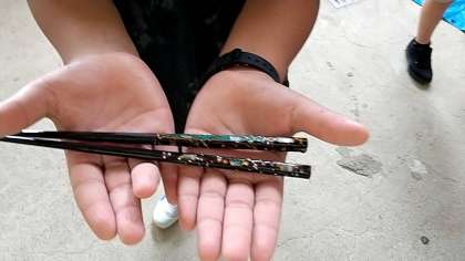 若狭塗箸は、トレーシングペーパーで磨くと、アワビの貝が出現してきて、さらに磨きをかけて、完成です。上手に「My 箸」ができました。思い出に残る若狭塗箸が完成している間に、雨が上がりました。次の活動は、岩野沢へウォークラリーです。ミッションを聞き、班ごとで持ち物や服装など相談しました。リーダーを中心に仲間意識も高まっています。