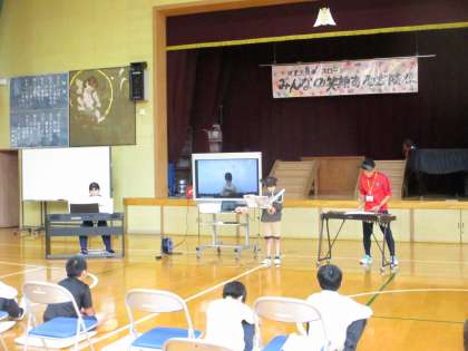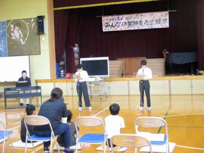 今日は11月1日(金)の学芸会に向けて、全体でリハーサルを行いました。各学年から日ごろの音楽の時間に取組んでいることを発表しました。当日は総合的な学習で調べたことの発表、学年別の音楽発表、体育の時間を中心に取組んでいる「宕陰音頭」の発表、恒例の宕陰太鼓も5曲発表します。午後からはプロのマジシャンによるマジックショーがあります。また、展示作品では、地域の方からもたくさんの作品を出していただきました。11月1日(金)は、地域の皆様もぜひお越しください。