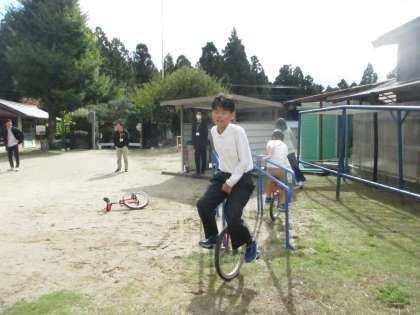 昼休みには一輪車検定がありました。児童生徒は1つ上のレベルを目指して頑張っていました。