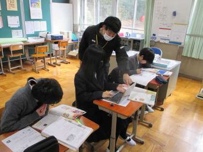 社会の時間は歴史分野で教科書を見て内容をまとめたり、パワーポイントを使って発表する準備したりしていました。
