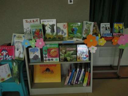 昨年度から図書支援員の先生に来ていただいて,図書室がきれいになり,子どもたちが借りやすいように整備されています。本もたくさん借りてくれるようになりました。また,季節にあったコーナーも作っていただいています。