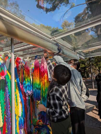資料館では事前学習をしていましたが原爆の被害の悲惨さに心を痛めている様子でした。平和の大切さを実感し、宕陰校みんなで折った折り鶴を代表して捧げました。