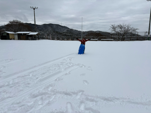 少し離れたところにある本校グラウンドには山の斜面があり、そり滑りを楽しむことができます。中学年の児童たちは勢いよくそり滑りに挑戦していました。また、校庭では後期課程の生徒たちも教員と一緒に雪合戦をするなど、学年を超えて雪と親しむ姿が見られました。近年、子どもの体力低下が課題として指摘されていますが、宕陰の豊かな自然環境の中では、寒い冬であっても自然と体を動かす機会が多くあります。遊びの中で寒さに負けずに体を動かす経験が、知らず知らずのうちに体力向上やたくましい心につながっていることを改めて嬉しく感じています。