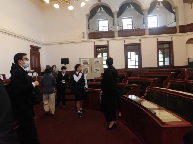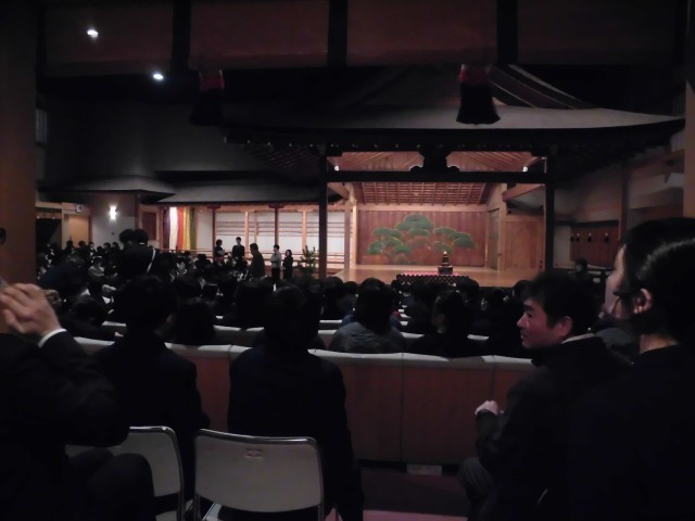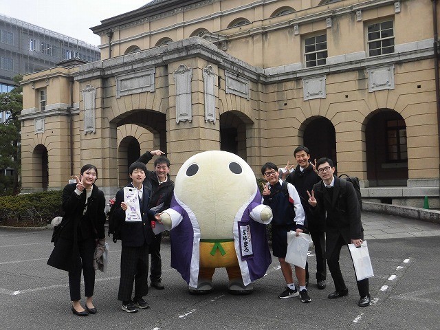 今日は、後期課程の生徒が伝統公演授業として金剛能楽堂へ行きました。能と狂言と邦舞・邦楽の舞台を初めて観ることができました。狂言が面白く、声を出して笑っていたようです。伝統芸能の魅力を知ることができました。また、終演後はお弁当を食べ、京都府庁を訪れました。庁内を案内していただき、議場では府議会の様子も見学でき、貴重な体験となりました。まゆまろと出会い、記念撮影です。