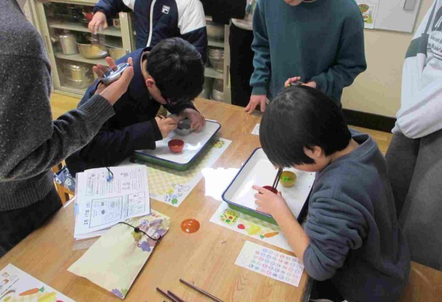 2月16日 昼休みに、給食委員会が企画した豆つまみ大会の個人戦を行いました。用意された12粒のプラスチックの豆を、丸箸を使ってどれだけ早く別の器に移せるかを競います。先日は2チームに分かれての団体戦を楽しみましたが、今日は一人ひとりのタイムを測定する個人戦です。豆を落とさないように慎重に運ぶ子、スピード勝負で一気に運ぶ子など、集中しながらも個性が光る場面がたくさん見られました。一番早かった児童生徒は、大人でも難しい豆つまみをわずか58秒で移すことができました。楽しみながらお箸の使い方を意識できる、素敵な食育の時間となりました。これからも、給食委員会を中心に、食に親しむさまざまな取組を続けていきます。