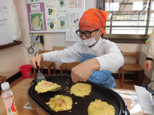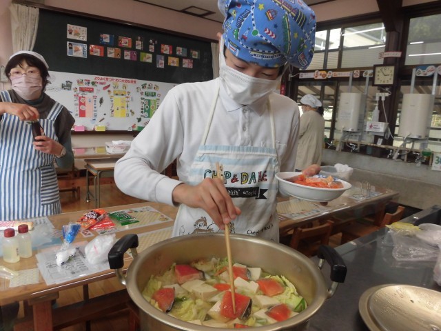 5・6時間目に、後期課程の生徒たちが合同で家庭科の調理実習を行いました。授業では全国各地の郷土料理について調べ、その土地でその料理が生まれ、親しまれてきた理由を予測したり、考察したりしてきました。今回は学習のまとめとして、実際に郷土料理を作る調理実習を行いました。今日作ったのは、北海道の「石狩鍋」と大阪を代表する「お好み焼き」です。生徒たちはそれぞれの作業を分担しながら調理を進め、できあがった料理をみんなで楽しく味わいました。学んだことを実際の調理につなげることで、各地域の食文化への理解もさらに深まった様子でした。