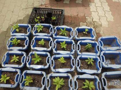理科の実験で使うホウセンカが成長してきたので,今日は大きめのプランターに植え替えをしました。どんどん大きく成長するのが楽しみです。