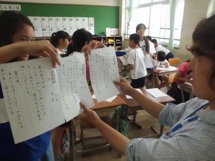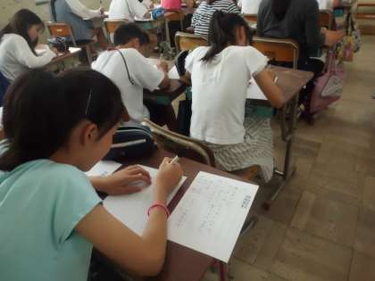 書写の授業で「清少納言」の「枕草子」の中の「春のあけぼの」を硬筆で書きました。久しぶりの硬筆で「上手のに書けたかな?」「先生どれがいいですか?」と言っていました。