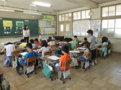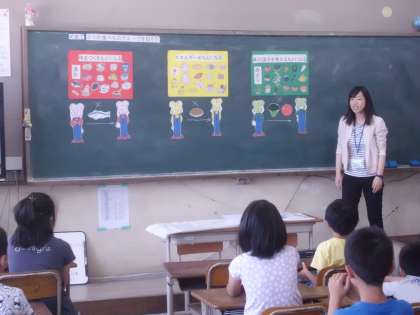 栄養教諭の堤先生に来ていただき,食べ物の3つのはたらきについて教えていただきました。