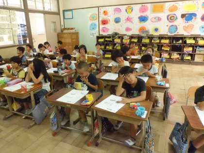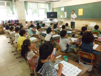 今日はまず,自分に6歳臼歯が生えているのかを鏡を見て確かめた後,6歳臼歯の磨き方を練習しました。