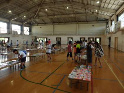 6年生は,社会で学んでいる歴史の本や物語,スポーツの本など,各々自分の興味のある本を読んで回っていました。「これがいいよ。」「この本おもしろいよ。」など,その場で友達に紹介している場面も見受けられました。