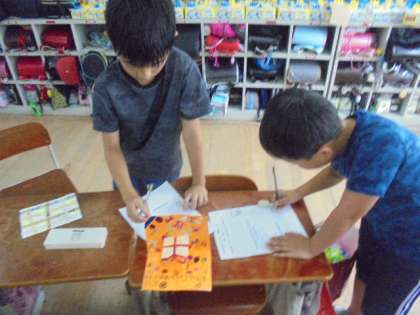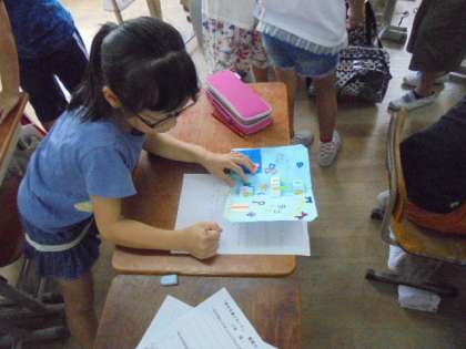 図工で作ったハッピーカードの観賞会をしました。どの子も工夫を凝らした作品で、各自で持ち寄った材料を活かしていました。自分の作品の工夫したところをまとめたあと、お友達の作品を鑑賞しました。