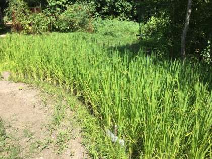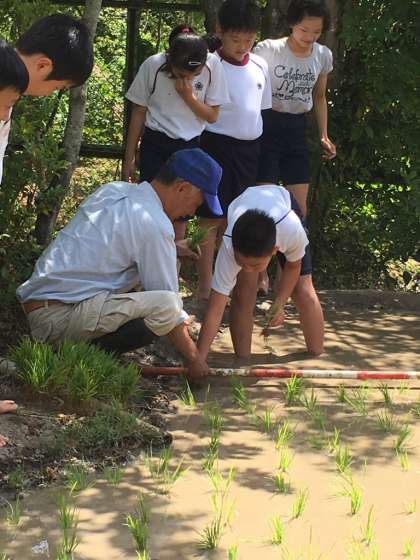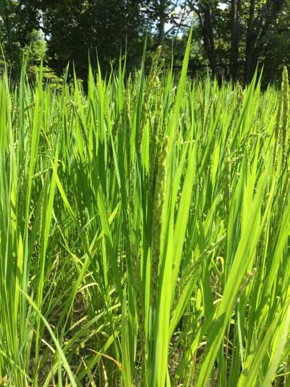 5年生が春に植えた稲が順調に育ち,しっかりと穂をつけています。