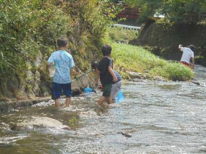 8月26日(土)に,土曜学習「川原でさがそう」を実施しました。今年度も小野郷小学校近くの清滝川に出かけました。子どもたちは,無我夢中で水生生物を探し,捕まえた魚やサワガニなどを持ってきたカゴに大事そうに入れていました。サワガニは,職員室前の廊下にもケースに入れて飼育しています。来校された際には,ぜひご覧ください。