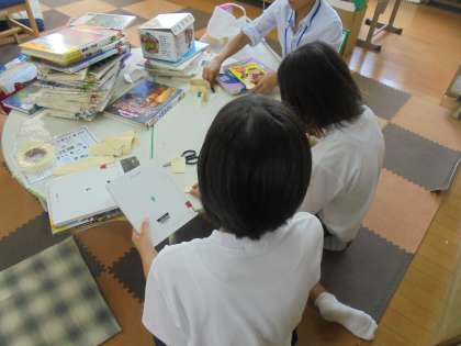 今日は,主に図書館の本の修繕や整備をしてくれました。さまざまな仕事をしてくれましたが,どの仕事も本を長持ちさせたり子どもたちが本を手にしやすくしたりするために大事な仕事ばかりです。中学生のおかげで,随分と本の修繕や整備が進みました。