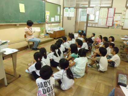 7日,読み聞かせに来てもらいました。どのクラスの子たちも,興味しんしん,身を乗り出して聞いていました。