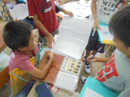 クラスの中で友だちの自由研究の成果を鑑賞しました。友だちの作品に目を輝かせていました。力作揃いでした。