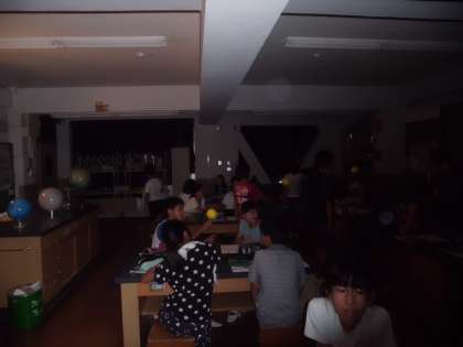月と太陽の位置関係を電灯や月の模型を使って学習しました。月の形が日によって変わって見えるのは,月と太陽の位置関係が変わるということを学びました。