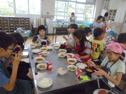 今日は給食のおかずと一緒に食べました。ボリューム満点の昼ごはんとなりました。