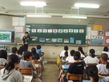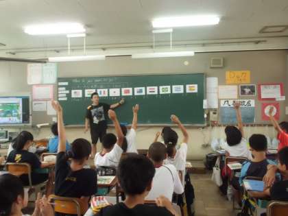 外国語活動「いろいろな世界の国について知ろう。」という学習をしました。国旗を見て国の名前を答えたり,写真の有名な建物がどこの国のものなのか考えたりしました。子どもたちは,良く国旗を知っていて「自分なら○○に行ってみたい。」と答えていました。