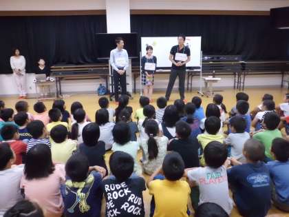 今日はゲストティーチャ—として読売テレビのアナウンサーの方をお招きして,よみかせをしていただきました。見なれない機材やアナウンサーさんの登場にみんな大盛り上がり!授業のめあては「ことばで伝える楽しさを味わおう」,読んでいただいたのは「うわばきクック」という本です。みんなもう待ち切れません。さて,どんなお話でしょうか…。