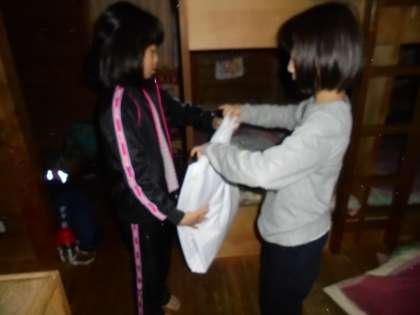 朝起きた子どもたちは,4日間お世話になった部屋の片づけをはじめました。