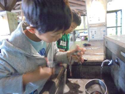 捕まえた魚は,自分たちの手でハサミを使ってさばきます。ほとんどの子どもが初めての体験でしたが,互いに協力をしあいながら,上手にさばいていました。